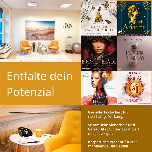 Gemeinsam entwickeln wir deine individuelle Strategie – von der ersten Hörprobe über dein Portfolio bis zur Bewerbung bei Verlagen oder Agenturen.